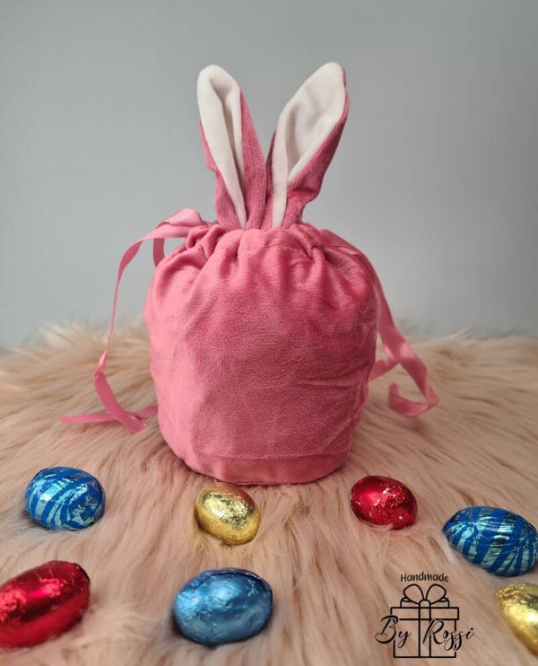 Bewaar de paaseitjes van je kindje in dit handig zakje met oortjes en voorzien van de eigen naam.